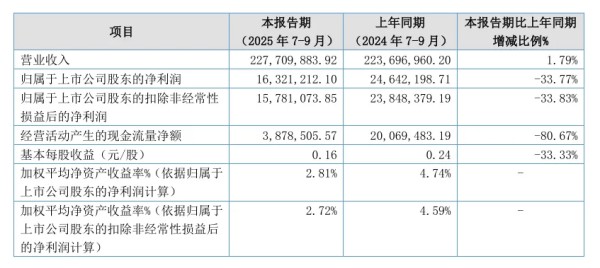 白皮书团队讯,10月27日,路斯股份发布2025第三季度财报。财报显示,公司前三季度营收实现同比增长,但净利润同比下滑超两成,呈现出“增收不增利”的态势。