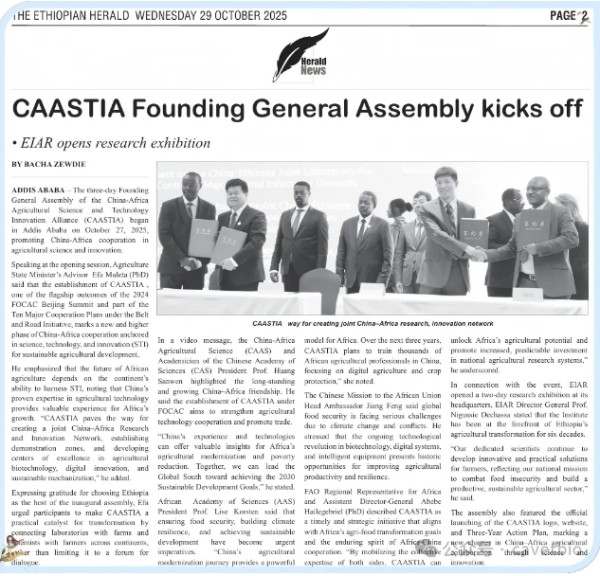 联盟大会为中非在农业领域科技资源共享、突破关键瓶颈技术,以及培育本土化科技人才等方面奠定了坚实的基础。埃塞俄比亚主流媒体把联盟会议的召开作为重要新闻做了报道,感谢中国政府和人民对非洲农牧业可持续发展的长期支持,盛赞联盟会议的举办让中非在农业科学、技术、创新方面的合作跨入了新的更高阶段。