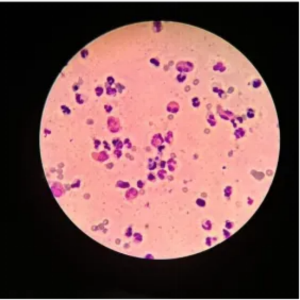 一、引言 嗜酸性肉芽肿是猫常见的皮肤炎性疾病,常见发病部位包括皮肤,皮肤黏膜交界处和口腔,通常与潜在的过敏病相关,经常由跳蚤过敏症引起,也可能是食欲过敏或者特异性皮炎所导致,肉芽肿有多样化的呈现方式,集合起来统称为嗜酸性粒细胞肉芽肿复合征,其中主要呈现方式为①嗜酸性斑块②嗜酸性肉芽肿(线性肉芽肿)③无痛性溃疡。该病例主要对无痛性溃疡使用泼尼松龙和抗生素进行治疗取得良好的治疗效果。 二、病例基本信息与病史 2.1病史 家养布偶猫,1岁1个月,雄性未去势。多猫家庭,免疫完全,不定期驱虫,室内生活。该病例于俩月钱来院就诊,主诉信息为俩周前开始,下前颚部位开始肿胀溃烂,最近俩天肿胀严重,精神状态良好,吃喝正常,无瘙痒疼痛表现。 2.2临床检查 患猫体重5kg,BCS:6/9,MCS:正常,CRT:<2s,口腔病灶部位中心凹陷有黄色坏死组织,体表淋巴结触诊未见明显异常,口腔视诊其余地方未见明显异常。 三、诊断结果 3.1实验室检查 根据临床检查,为患猫进行了一系列实验室检查,包括血常规、细胞学压片。结果分别见图1-2。 图1.血常规检查结果(10.2) 细胞学镜下可见大量嗜酸性粒细胞,球菌,酵母菌过度增殖。 图2.细胞压片结果(10.2) 3.2影像学检查 DR可见肿物部位呈软组织密度,肿物附近骨骼未见明显异常。 3.3诊断 综合上述实验室检查结果以及DR影像结果,该病例出现外周血嗜酸性粒细胞升高,局部嗜酸性粒细胞增多,诊断为嗜酸性粒细胞肉芽肿复合征无痛性溃疡。 四、治疗方案及预后 4.1治疗方案 第一周泼尼松龙2mg/kg/12q,第二周泼尼松龙1mg/kg/12q,后期计量递减至1mg/kg/24q,持续到痊愈。克维舒(阿莫西林克拉维酸钾干混悬剂)0.2-0.4ml/kg,bid,po,单一饮食-低过敏性处方粮,定期驱虫莫爱佳一月一次,控制潜在因素。 4.2回访 治疗第3天,第7天,第14天回访病例,告知溃疡处恢复良好,在逐步愈合,治疗16天来院就诊,溃疡处恢复良好。 五、讨论及小结 5.1嗜酸性肉芽肿临床特征 猫嗜酸性肉芽肿的症状复杂,在中年猫的唇部或者口腔粘膜处常可见无痛性溃疡。在大腿内侧及腹部的皮肤常发生嗜酸性斑块。在幼龄猫后腿背侧常发生嗜酸性肉芽肿,也可发生在舌,颚和口腔黏膜处。猫口腔嗜酸性肉芽肿可能还会并发皮肤损伤。 5.2临床检查及实验室诊断 病变的鉴别诊断包括感染性(细菌,真菌,病毒)溃疡,创伤和肿瘤(鳞状细胞癌,肥大细胞瘤,淋巴瘤),细胞学分析可见,出现大量的嗜酸性粒细胞,但是不能确定感染是原发性感染还是细菌或者真菌继发性感染,少量病例会导致外周血液中嗜酸性粒细胞升高。 本病例中血常规检查嗜酸性粒细胞升高,结合细胞学检查,基本符合猫嗜酸性肉芽肿无痛性溃疡的临床病理异常。 5.3针对猫嗜酸性肉芽肿继发感染的特殊优势 双重作用:抗感染+免疫调节细菌感染是诱发或加重嗜酸性肉芽肿的关键因素。 阿莫西林克拉维酸钾混悬液 通过清除细菌感染源,直接减轻炎症反应。同时,抗生素(尤其β-内酰胺类)可能通过调节免疫细胞活性(如抑制中性粒细胞趋化),间接缓解过度免疫反应,契合该病的免疫学机制。 口腔/皮肤渗透性优异 嗜酸性肉芽肿常见于口腔黏膜和皮肤。 阿莫西林在口腔组织、皮肤及软组织中渗透性强,能有效到达病灶; 克拉维酸增强其在感染局部的稳定性,确保疗效。 5.4剂型与安全性适配猫科需求 混悬液剂型的临床便利性 适口性好:猫对药片接受度低,混悬液可混合食物喂服,提升依从性。 精准剂量调整:混悬液便于按体重(如25mg/kg)灵活调整剂量,避免过量风险。 安全性高,副作用可控 试验表明,克维舒在5倍推荐剂量下仍未见明显不良反应13。其肾毒性低于氨基糖苷类,肝毒性低于四环素类,更适合长期使用(如嗜酸性肉芽肿需数周治疗)。 5.5预后 该病治疗需要综合性管理,寻找并排除潜在病因,如体外寄生虫,食物等,存在继发感染的情况下应同时加以管理,糖皮质激素和克维舒混悬液为关键治疗用药,由于存在潜在的副作用,长期用药该监测临床症状及血液指标,总体而言在能排除过敏原的病例预后良好,部分病例可能需要长期进行糖皮质激素和抗组胺药物,免疫调节剂治疗。该病例在确诊后坚持用药,预后良好,完全恢复后,主人想在家多观察,目前未见复发。 六、参考文献 [1] 夏兆飞,陈艳云,王姜维主译,小动物内科学(第五版)[M]中国农业出版社,2019.11 [2] 林德贵,张迪,施尧主译,小动物皮肤病学(第七版)[M]辽宁科学技术出版社,2021.1 [3] 刘欣主译,犬猫皮肤细胞学[M]中国农业科学技术出版社,2019.1