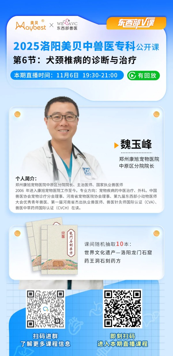 《东西部V课》预告:2025洛阳美贝中兽医专科公开课第6节:犬颈椎病的诊断与治疗