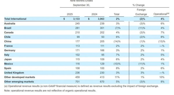 2025年第三季度来自伴侣动物业务的营收为16.5亿美元,2025年前三季度来自伴侣动物业务总营收为49.9亿美元。2025年第三季度来自中国市场的营收为4500万美元,同比下降26%。2025年前三季度来自中国市场的总营收为1.77亿美元,同比下降14%。巴西继续成为硕腾的最大海外市场,2025年第三季度来自巴西市场的营收为1亿美元,2025年前三季度来自巴西市场的总营收达到2.8亿美元。