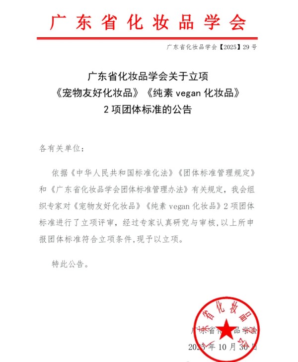 近日,曼秀雷敦(中国)药业有限公司作为牵头单位,正式向广东省化妆品协会提交《宠物友好化妆品》团体标准立项申请,并予以立项。