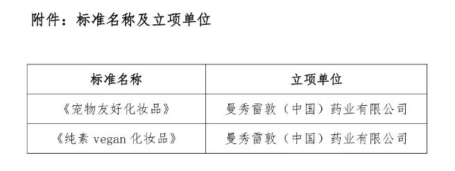 曼秀雷敦提交《宠物友好化妆品》团体标准立项申请