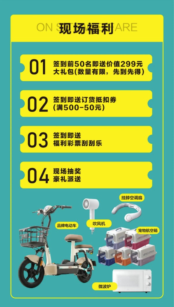 现场签到就能领听课礼包,抢先一步业绩增长!更有赞助礼品抽奖活动,超多惊喜好礼拿到不停手!品牌电动车,让出行更便捷;实用小家电,为门店增添温馨氛围;宠物航空箱,帮门店更好吸引客户......来参加活动,不但听课学干货,还能随时收获好礼惊喜!