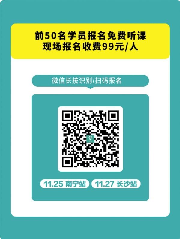 11.25南宁站、11.27长沙站报名火热开启!本轮活动,导师们带来面对面专题分享,更会聚焦南宁、长沙当地最受关注的热点问题,与大家展开现场交流探讨,助力小伙伴们把新模式、新方法融入门店升级经营。线上预约限时免费,门店小伙伴抓紧时间报名!