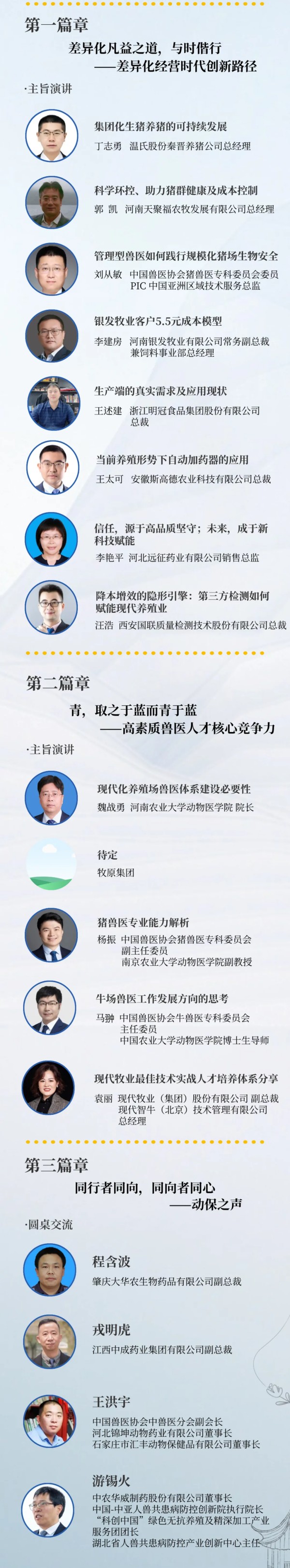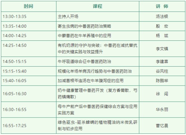 一、论坛信息 论坛时间: 2025年11月13日-15日 论坛主题: 在变局中共创中兽医药未来 论坛地点: 中国·郑州 黄河迎宾馆(郑州市惠济区迎宾路1号) 报到地点: 郑州·黄河迎宾馆签到处(9号楼) 二、日程安排 11月13日 13:30-18:00 一层牡丹厅 第二届畜牧兽医企业家创思讲坛 邀请多家养殖企业、动保企业管理者以及兽医,旨在推动兽医、兽药、养殖业产业链协同来提升行业竞争力,促进构建技术先进、生态优先、资源节约、绿色低碳畜牧兽医产业新格局。 11月14日上午 8:30-10:00 一层报告厅 开幕式及主题报告 邀请院士及中兽医药行业专家从政策法规、动物健康管理新理念、交叉学科研究、产业发展变革等多角度进行主题分享。 11月14日下午-15日上午 专场技术报告与研讨 1.中兽医药在家禽疾病防控中的作用与方案解析专场 2.中药材、兽用中药与中药资源专场 3.猪健康管理与绿色养殖专场 4.反刍动物健康养殖与中兽医药应用实践专场 5.水生动物疫病防控研讨会 三、专场课程内容 (具体课程以现场公布为准,点击标题查看详情) 畜牧兽医企业家·创思讲坛 猪健康管理与绿色养殖专场 11月14日下午 11月15日上午 中兽医药在家禽疾病防控中的作用与方案解析专场 11月14日下午 11月15日上午 中药材、兽用中药与中药资源专场 11月14日下午 11月15日上午 反刍动物健康养殖与中兽医药应用实践专场 11月14日下午 11月15日上午 水生动物疫病防控研讨会 四、专家阵容 (排名不分先后,依照授课顺序介绍) 魏战勇 河南农业大学动物医学院 院长 李金龙 东北农业大学动物医学院 院长 贺俊畅 银发牧业养猪事业部 技术总监 曹 飞 四川省兽医协会中兽医分会 秘书长 华传仙 江西雪山牧业有限公司 技术总监 赵丽丽 浙江金大康动物保健品有限公司 总经理助理 刘桂兰 瑞普生物股份有限公司 研发总监 王一凡 河南牧业经济学院动物医药学院 副教授 王德云 南京农业大学 教授 王学兵 河南农业大学 教授/博导 郭世宁 华南农业大学 教授/博导 孙红祥 浙江大学 教授/博导 汪德刚 河南牧业经济学院 教授 郝宝成 中国农科院兰州牧药所 副研究员 王 芳 河南农业大学 刁有祥 山东农业大学 教授 韩文登 中国兽医协会中兽医分会 副会长 山东省兽医协会中兽医分会 会长 张红英 河南农业大学 教授 李富言 山东富言禽病研究院 教授/院长 张景艳 中国农业科学院兰州畜牧与兽药研究所 副研究员 李定刚 河北农业大学 正高级兽医师 于文会 东北农业大学 教授 司红彬 广西大学 教授 乔宏兴 河南牧业经济学院 教授 邱深本 广东科贸职业学院 教授 王兰波 河北锦坤动物药业有限公司 技术总监 舒 刚 四川农业大学 副教授/副系主任 史万玉 河北农业大学 教授 曾建国 湖南农业大学动物医学院 教授/博导 康利平 中国中医科学院中药资源中心 业务办主任 郭 群 西安国联质量检测技术股份有限公司 兽药技术负责人 李 科 山西大学 教授 范明夏 河南炎黄生物工程有限公司 研发总监 杨彦平 康璞基石(陕西)健康生命科技有限公司 总经理 董 虹 北京农学院动物科学技术学院/动物医学院 副院长 宋安东 河南农业大学研究生院 院长/教授 王建锋 吉林大学“唐敖庆学者”领军教授/博士生导师 董诚明 河南中医药大学药学院教授/博士生导师 王胜义 中国农业科学院兰州畜牧与兽药研究所 副所长 汤法银 河南牧业经济学院动物医药学院 院长 河南省中兽药经典名方传承与创新工程技术中心 主任 王帅玉 中国农业大学动物医学院 副教授 教学动物医院内科/中兽医门诊医师 樊克锋 河南牧业经济学院 教授 河南省九一中医药研究院 执行院长 李俊强 河南农业大学 副教授 王渭玲 西北农林科技大学 教授/博士生导师 殷 宏 中国农科院兰州兽医研究所 研究员/原所长 杨 斌 内蒙古自治区农牧业科学院兽医研究所 副所长 李文镇 现代牧业集团 有机大区总经理 李建喜 研究员 中国农业科学院兰州畜牧与兽药研究所 副所长 谷风柱 山东农业工程学院 研究员 陈鹏举 河南省现代中兽医研究院 院长 徐 闯 中国农业大学动物医学院 教授 华永丽 甘肃农业大学 教授 菅忆晨 河南农业大学动物医学院 在读兽医专业博士 严作廷 中国农业科学院兰州畜牧与兽药研究所 研究员/博士研究生导师 张 铁 河北农业大学 教授 买占海 新疆农业大学 副教授 王贵波 中国农业科学院兰州畜牧与兽药研究所 副研究员 郝智慧 中国农业大学动物医学院临床兽医学部副主任/中兽医药系主任/中兽医药创新中心主任 尹华江 四川省兴文县动物疫病预防控制中心 研究员 马 霞 河南牧业经济学院 教授 肖鉴鑫 四川农业大学 动物营养研究所 副教授 秦启伟 中国兽医协会水生动物兽医分会 会长 华南农业大学海洋学院 教授 周 勇 中国水产科学院长江水产研究所 副主任/研究员 五、参会攻略 会议报名 会议费包含听课证、会议材料、餐费等,交通和住宿自理。 参会报名咨询: 宣秋希 13716333588 交通信息 住宿预订 住宿咨询: 关丹丹 13739634991(中国兽医协会) 管经理 0371-66778555(黄河迎宾馆) 继续教育学分 报名本次大会可获得继续教育学分! 点击图片可查看学分获取攻略↓↓↓ 照片直播请扫码查看!