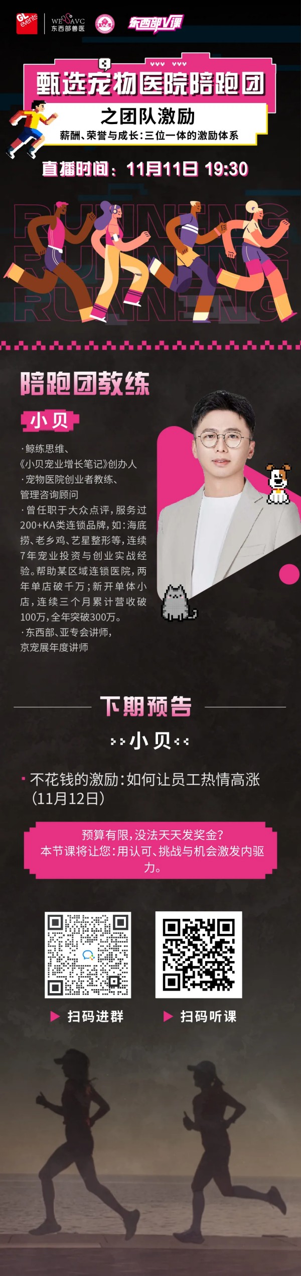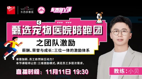 《东西部V课》预告:甄选宠物医院陪跑团之团队激励|薪酬、荣誉与成长:三位一体的激励体系