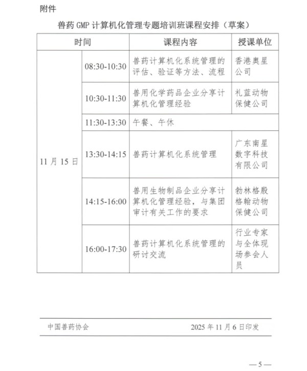 关于举办兽药GMP计算机化管理专题培训班的通知