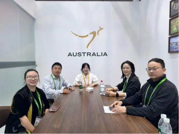 进博会期间,澳大利亚品牌馆内的澳涞宠展区成为行业交流热点。品牌创始人胡霏(Grace Hu)接待了多位宠物大健康领域的专家与企业家,展开深度交流与合作洽谈。