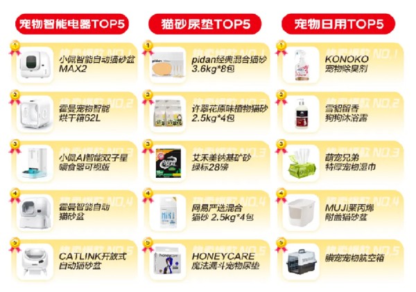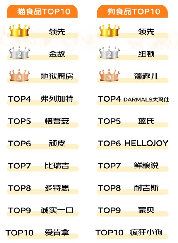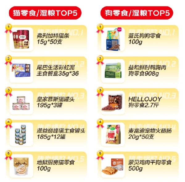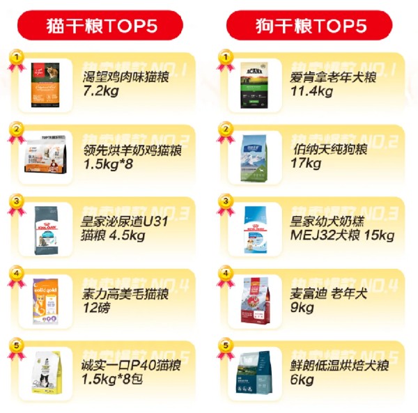 犬猫主粮、零食、用品、水族小宠TOP榜