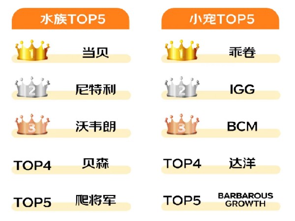 水族TOP5增速品牌:当贝、尼特利、沃韦朗、贝森、爬将军;