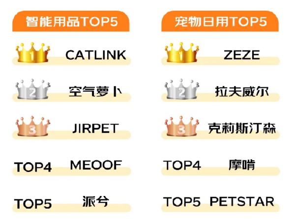 宠物日用TOP5增速品牌:ZEZE、拉夫威尔、克里斯汀森、摩啃、PETSTAR;
