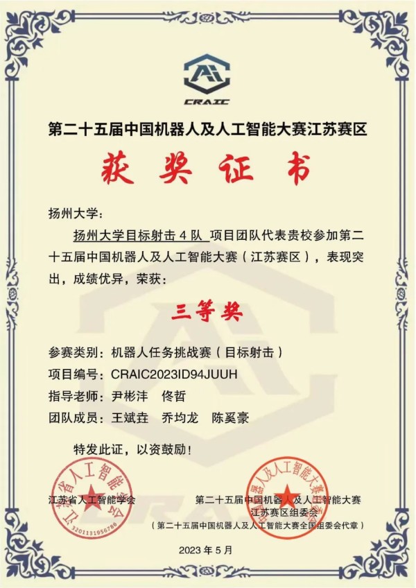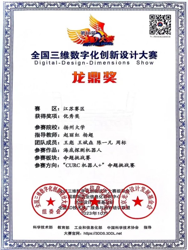课堂学习给了他扎实的理论根基,而真正将知识付诸实践的,是大一下学期加入尹彬沣老师组织的机械学院竞赛团队。在团队的第一次项目中,他跟随着学长的节奏,一点点摸索、一次次调试,最终站上了第二十五届中国机器人及人工智能大赛的领奖台,捧回了国家级二等奖。