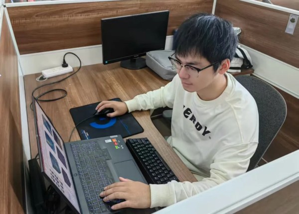 大二那年,在第十一届全国大学生数字媒体科技作品及创意竞赛中,他主动挑起大梁,第一次担任队长。没有课的空教室、周末的实验室,都成了他和队友们“泡”在一起的地方——画图、调试、讨论、推翻、重来。那段日子忙碌却饱满,他带领团队获得了第十一届全国大学生数字媒体科技作品及创意竞赛一等奖。竞赛的奖项还在桌上闪着光,王斌垚的脚步却已迈向更远的地方。大二那年,一个身影出现在他科研道路的起点——理论力学课的郝文峰老师。在老师的带领下,他逐步打开了科研新世界的大门。