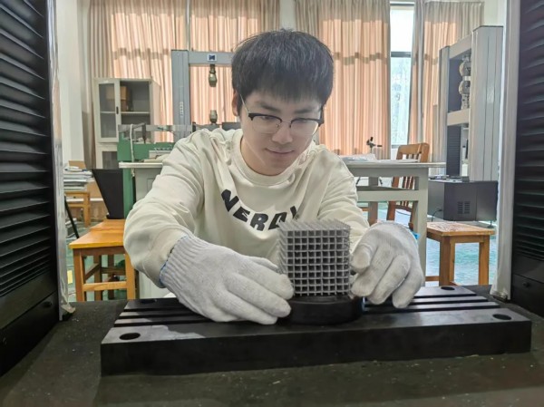 大二的寒假,当同学们都已陆续返乡,王斌垚却选择留在实验室。校园不寒冷,寒冷的是天气,他独自与实验设备为伴,完成了关于“内凹蜂窝结构机械性能”性能探讨的所有试样测试和数据采集。这段被他称为“艰难却充实”的岁月,就这样在无数个日夜交替中,沉淀为成长路上最坚实的基石,也为他后来在中国机器人及人工智能大赛、全国大学生机械创新设计大赛等多项赛事中斩获佳绩,奠定了扎实的科研基础与实践能力。