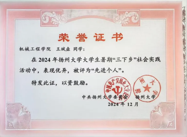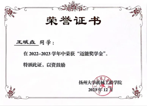 在王斌垚的世界里,优秀绝不只是一张满绩的成绩单。作为连续服务机械2204班两年的班长和一名中共党员,他将责任化为行动,累计180小时的志愿服务,是他对“担当”二字最朴实的诠释,荣获我校“优秀共青团员”“三好学生”“学生社区优秀个人”“学生社区优秀领航导生”等称号。 面对机械专业繁重的课业,王斌垚自有方法,他称之为“日清-惜时-反思”三部曲。这套方法让他把学习的主动权牢牢握在自己手中,也让他在学习中排名保持专业第一,获得学校奖学金(一等)、迈能社会奖学金。