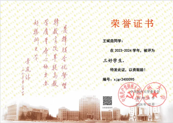 在他看来,学术是“螺旋式上升”的过程,要敢于提问、不怕失败——“每一次尝试,都在塑造更坚韧的自己。”他祝愿学弟学妹既能深耕学术的土壤,也能拥抱生活的广阔,“不要让一时的失利,消磨了少年的心气。答案,说明所有。”