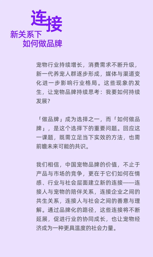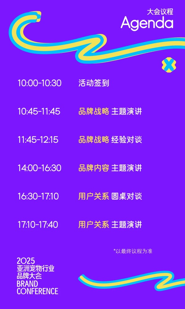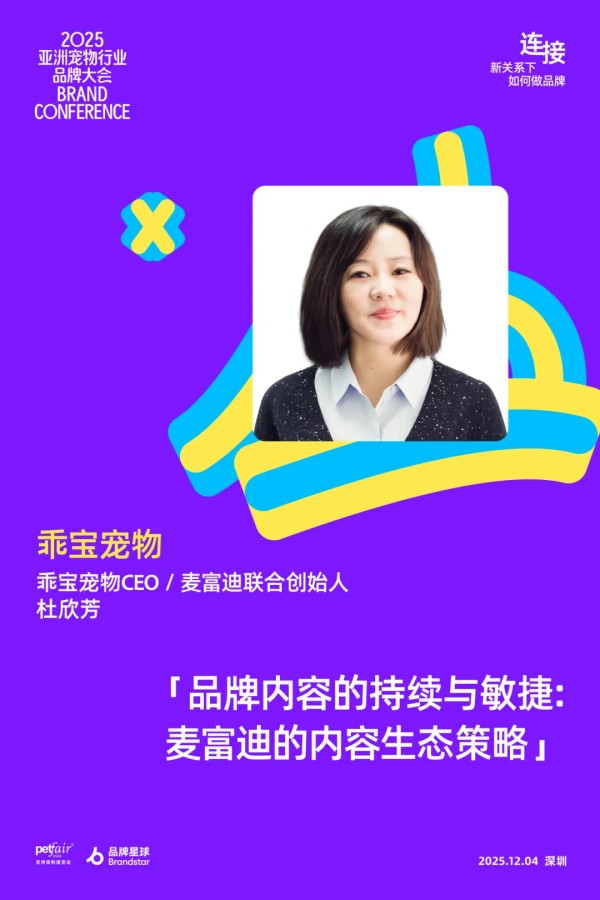 2025年,首届“亚洲宠物行业品牌大会”将于第9届亚宠华南展同期举办,本次大会由亚宠PFA首度发起,重磅引入专注品牌领域的媒体型研究机构品牌星球Brandstar,联合呈现宠物行业首个行业面向CMO (首席营销官)、CBO (首席品牌官)的品牌大会,为宠物品牌人搭建深度交流与品牌化思考场域,共同推动中国宠物行业迈向品牌力驱动的新阶段。