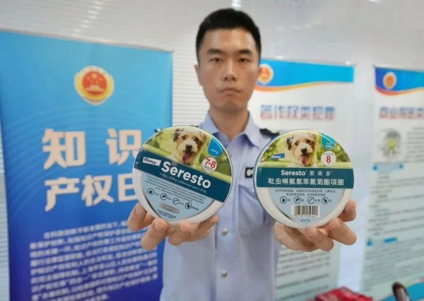 今年8月上海宝山警方在“砺剑2025”系列专项行动中,成功破获一起销售假冒品牌宠物驱虫用品的案件,抓获犯罪嫌疑人2名,查获假冒品牌宠物驱虫项圈及驱虫滴剂5万余件,涉案金额500余万元。