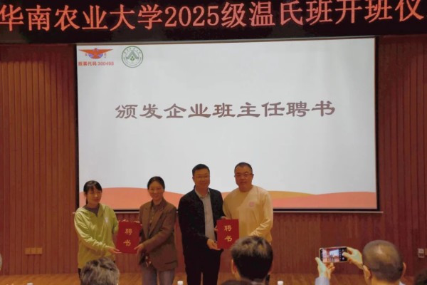 11月22日,华南农业大学2025级本科生动物医学(温氏班)开班仪式在云浮市温氏学院隆重举行。温氏集团副总裁赵亮、人力资源部(温氏学院)部长晏培华、助理部长张堂知、周龙海,华南农业大学副校长温小波,研究生院院长钟国华、副院长黄超,本科生院副院长王金凤,兽医学院副院长(主持工作)孙坚、党委副书记陈晓梅及辅导员李坤阳、刘锟出席本次会议。 开班仪式上,赵亮代表温氏集团致辞。他回顾了温氏与华农三十多年的紧密合作历史,对双方取得的丰硕成果表示高度肯定。面对新时代农牧业发展的新要求,他希望双方持续深化校企合作,鼓励学生保持务实学风,勤奋学习,成为支撑乡村振兴和农牧业现代化的新一代人才。 华南农业大学副校长温小波表示,校企合作不仅是资源共享和互利共赢的简单结合,更是一种对教育事业和人才培养的深刻理解和共同承诺。他勉励同学们在今后的学习中充分发挥平台优势,开阔心胸、拓宽视野,依托温氏班更深入地学习专业知识,实现全面发展。 顾婷副教授作为教师代表发言,她表示,担任温氏班班主任既是一份荣誉,更是一份沉甸甸的责任。希望同学们要心怀感恩,传承温氏班优良传统,刻苦钻研、注重实践、回报社会。 2022届动物科学(温氏班)毕业生代表梁国濠、动物科学学院研究生温氏兴农创新班学生代表方准和兽医学院动物医学(温氏班)朱美燃分别发言,他们对温氏集团和学校共同提供实现梦想的奋斗舞台和广阔的行业机遇表示感谢,由衷地表达了对温氏班的期待,以及扎根专业、努力学习的决心。 最后,人力资源部(温氏学院)总经理晏培华、研究生院院长钟国华、本科生院副院长王金凤分别为研究生温氏兴农创新班、2025级动物医学(温氏班)、动物科学(温氏班)授予班旗。学院副院长孙坚为企业班主任张堂知颁发班主任聘书。 同时开班的还有2025级动物科学温氏班和动物科学学院研究生兴农创新班,动物科学学院党政领导和相关老师出席了开班仪式。开班仪式当天,师生参观了温氏文化馆以及南牧装备科技有限公司。 据悉,华南农业大学和温氏集团合作于2012年设立动物科学(温氏班),2015年实现独立招生。从2023年开始,在温氏集团支持下,学校本科招生新增动物医学(温氏班)方向。自成立以来,本科生温氏班和研究生温氏兴农创新班始终紧跟国家、行业发展步伐,致力于培养新时代创新型、复合型、应用型高素质人才,为实现农业农村现代化提供人才支撑。