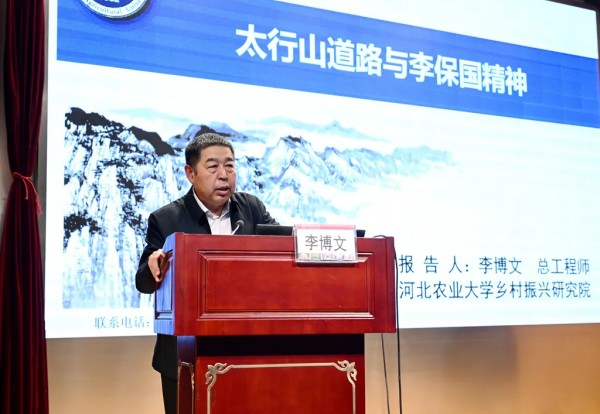 河北农业大学乡村振兴研究院总工程师兼副院长李博文教授作专题报告,围绕太行山道路的概述、开创、深化、拓展四个方面,深入浅出地介绍了河北农业大学社会服道路的传承升级和工作特色,深入阐释了李保国精神的丰富内涵,为学校开展乡村振兴与社会服务工作提供了有益借鉴和深刻启发。