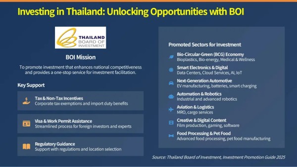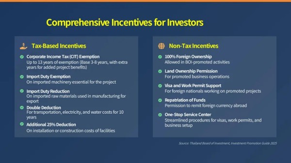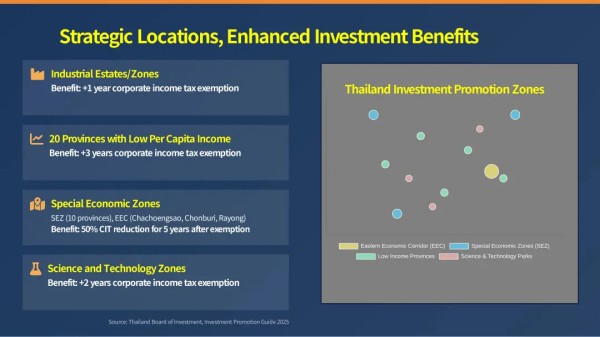 Mr. Chatchai 特别提到,泰国政府鼓励投资高附加值农业、生物技术、电动汽车及相关产业链等现代化生产领域。“新旧设备均可计入投资总额,这为已有生产线的企业提供了便利。”