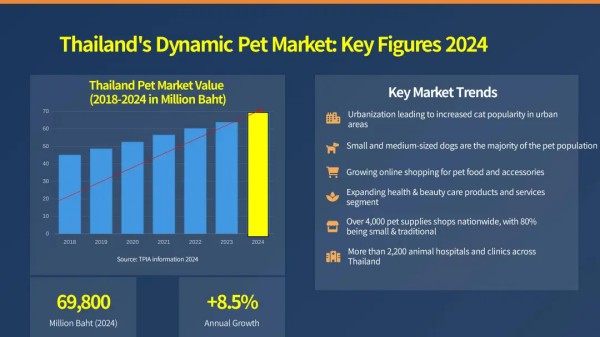 PART \ 01 泰国宠物行业 2024 最新数据:8.5% 增长,出口全球第四 作为东南亚宠物产业的核心市场,泰国宠物行业的发展态势备受关注。Chatchai 先生在分享中首先介绍了泰国宠物产品行业协会(TPIA)的背景:“我们协会从 2003 年以团体形式起步,如今已正式注册,拥有 83 名成员,涵盖分销商、进口商、制造商和零售商,能全面反映泰国宠物行业的现状。” 随后,他公布了关键数据:2024 年泰国宠物行业整体规模达70 亿泰铢,同比增长 8.5%,保持稳健上升势头。具体来看: 市场结构:宠物食品占比最高,达 55%;其次是宠物健康与医疗保险(20%)、零食(10%)、卫生用品(8%)。 “线上销售占比约 20%,但品类差异很大,”Chatchai 先生补充道,“宠物配饰的线上销售能超过 50%,但食品业务仍以线下为主。” 消费趋势:与全球同步,“宠物人性化” 成为核心趋势,城市化推动猫经济在城市中小型家庭中快速发展;同时,“狗狗仍是泰国宠物的大多数”,这一基础市场格局未变。 出口实力:“泰国是全球第四大宠物产品出口国,出口量远超进口量。”Chatchai 先生强调,核心出口品类为湿粮、干粮和宠物零食以及营养补充剂。主要目的地包括美国、日本、澳大利亚、马来西亚、德国、英国及中国台湾、印度等,国际市场潜力巨大。 PART \ 02 宠物食品工厂投资泰国:政策红利 + 实操指南全解析 针对本次论坛的核心议题 —— 泰国投资机遇,Chatchai 先生明确表示:“在泰国投资,政府部门方面,大家首先要对接的是泰国投资委员会(BOI),他们是‘一站式服务’部门,能帮大家解决土地选择、设施规划等各类投资问题。” 随后,他从政府支持、特权福利、区域选择三大维度,给出了详细攻略: 1. 核心对接部门:泰国投资委员会(一站式服务) Chatchai 先生介绍说,泰国投资委员会(BOI)是外资进入泰国的关键对接窗口,其 “一站式服务” 涵盖土地选择、设施规划、政策咨询等全流程支持,能高效解决投资者在泰国建厂的各类疑问,降低沟通成本。 2. 投资特权:税收 + 非税收双重福利,力度空前 “在泰国投资,大家能获得两大核心好处:税收特权和非税收特权。”Chatchai 先生详细拆解了具体福利: 税收优惠: 企业所得税减免:“根据大家投资的行业、产品或工厂类型,基本能享受 8-13 年的所得税减免。” 进口关税优惠:进口生产设备(含新旧机器)可申请关税延期或豁免,“大家从中国工厂进口机器到泰国安装,这些机器也能成为申请投资价值的一部分,部分机器甚至能免缴进口税。” 额外扣除福利:“泰国最长提供 10 年的交通、电费和水费双倍扣除,这对企业来说是不小的节省;部分投资领域还能在基础设施上获得 2.5 倍的扣除。” 非税收激励: 股权灵活:“符合条件的行业,大家能拥有 100% 的所有权,不需要和泰国企业组建合资公司,但具体要看行业,建议提前和投资委员会沟通。” 土地与签证:允许外资企业购买工业用地,“对于从中国或其他国家派来的工程师、员工,也能提供签证和工作许可支持。” 全程保障:“正如我所说,泰国投资有一站式服务能帮大家,从手续办理到落地运营,都有专业支持。” 3. 区域选择:三大核心区域,各有优势 泰国共 76 个省份,划分为 5 大区域,谈到投资区位选择,Mr. Chatchai 先生建议企业重点关注曼谷周边地区和东部经济走廊(EEC)。“EEC距离曼谷约1.5小时车程,毗邻深水港,物流便利且享有特殊政策。”此外,在人均收入较低的 20 个省份,比如北部或南部,也提供地方政府的额外扶持,适合区域性产能布局。 PART \ 03 对接通道:快速链接泰国投资资源