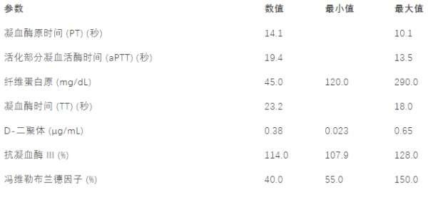 表 1在本地兽医处初次就诊时的血液凝血分析。
