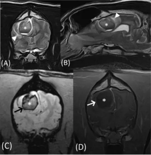 总之,该病变符合缓解期的慢性轴内出血,缺乏病灶周围水肿。随后的血液检查显示VWF无进一步异常,颊粘膜出血时间在正常参考范围内。截至稿件准备之时,该犬临床表现正常。