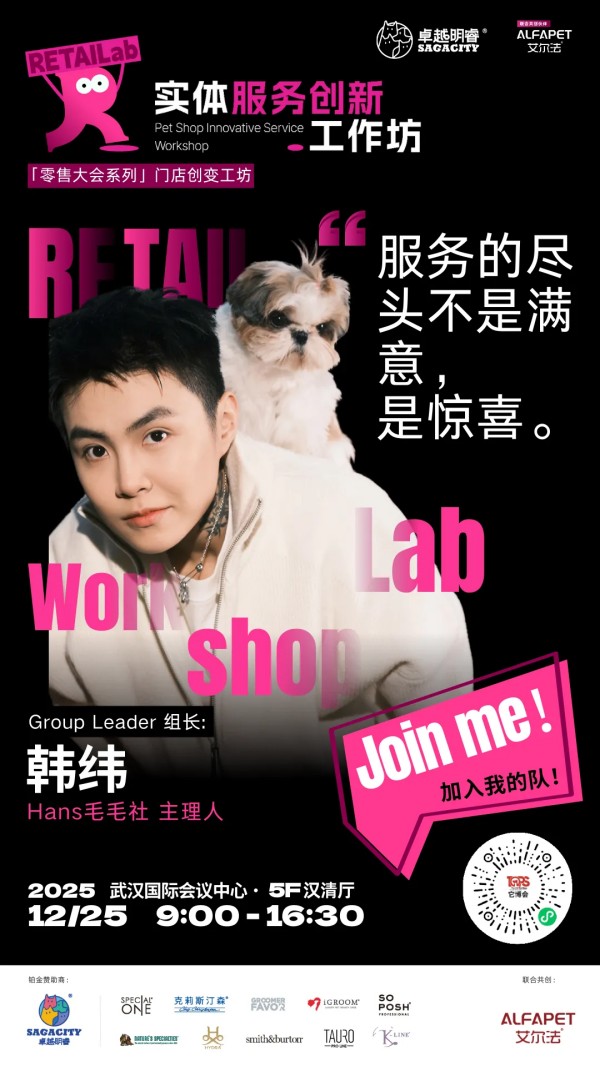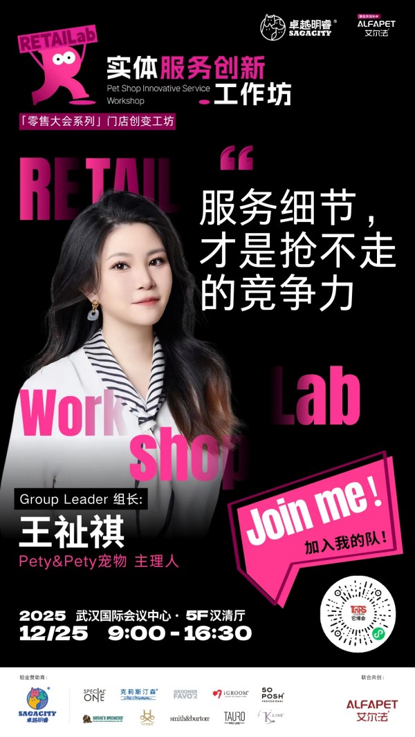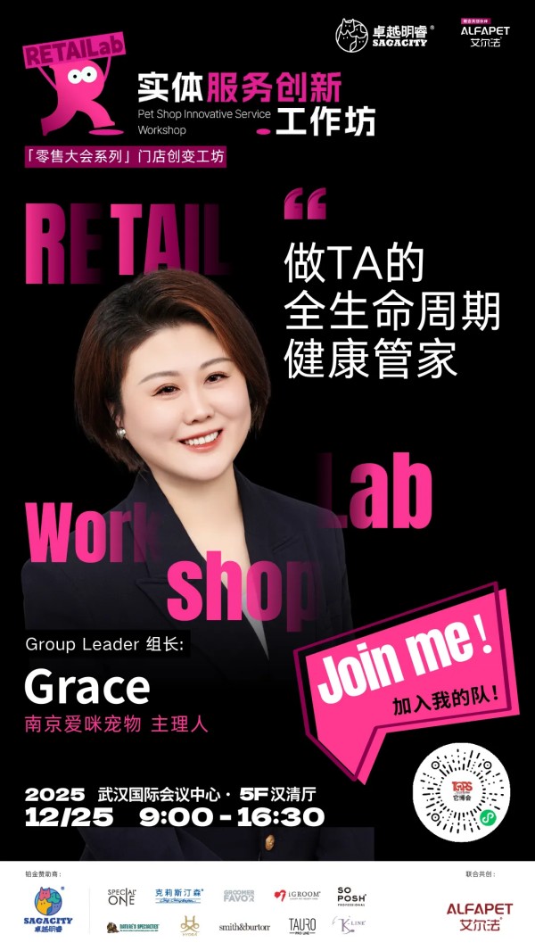 为此,2025中国宠业零售大会,特别带来由卓越明睿冠名,艾尔法联合呈现实体服务创新工作坊。我们将摈弃空谈,聚焦实战,这里有全国线下宠物服务方面一线经营的佼佼者毫无保留的分享,更首次系统性地引入"实战工作坊",让带来的每一个困惑,在现场找到答案。