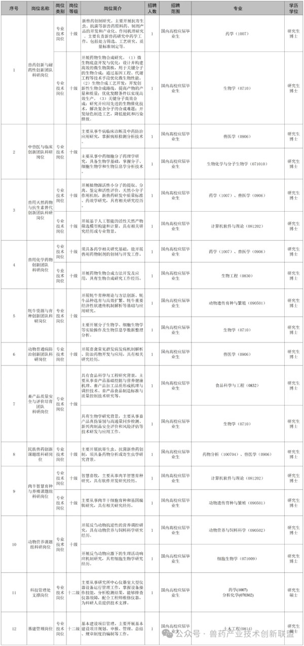 兰州畜牧与兽药研究所2026年度第一批统一公开招聘岗位信息表
