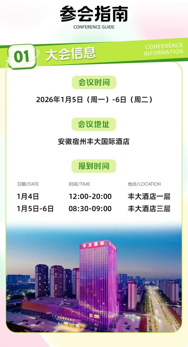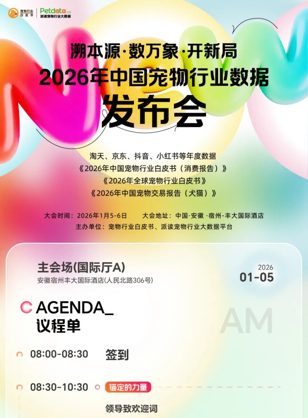 白皮书团队讯,由宠物行业白皮书,派读宠物行业大数据平台主办、福建贝创投资发展集团有限公司,安徽恩宠有加宠物用品有限公司联合主办、安徽省宠物行业协会,华南农业大学动物科学学院,赣南创新与转化医学研究院,宿州市宠物经济商会协办、北京派读科技有限公司,宿州市广播电视台承办的2026年中国宠物行业数据发布会将于2026年1月5日-6日在宿州丰大国际酒店隆重举行。为了方便大家提前规划和安排以及获得更好的参会体验,白皮书团队特别为大家整理了本次年度宠物行业数据发布大会的参会攻略。