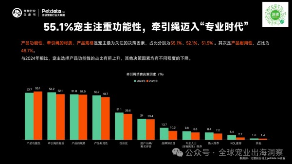 驱虫种类的多少占比47.4%(有所上升)、使用的便利性、口碑、品牌、医生推荐(有所下降),占比均在30%以上