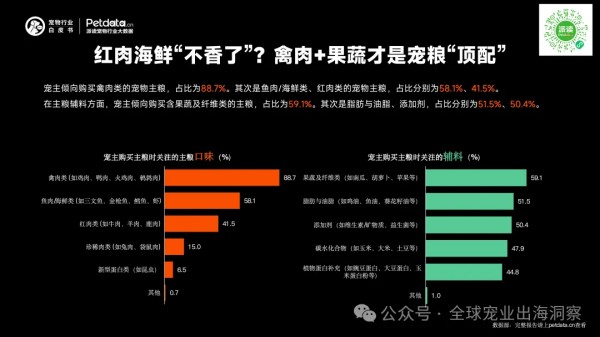 禽肉+果蔬配方,正成为新一代健康选择。宠主购买主粮时关注的主粮口味: