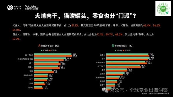 狗粮认肉干,猫粮认罐头,零食偏好从不含糊。犬主人中: