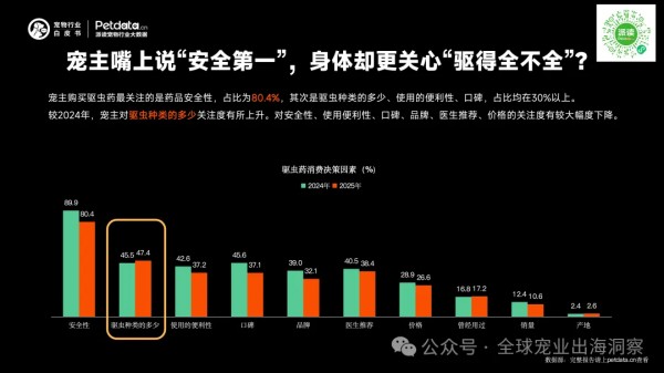 “安全”是基础红线,“驱得全”才是最终的决胜选项。宠主购买驱虫药最关注的是: