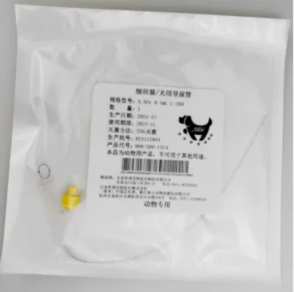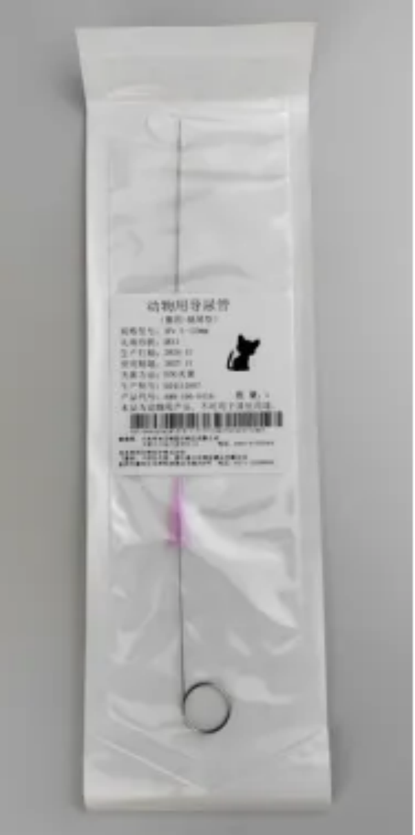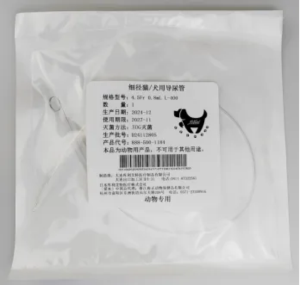 一次性灭菌型 双腔导尿管(犬猫) 3.5Fr(0.4mL)L-200 4.5Fr(0.8mL)L-400 开孔: 侧端开孔 材料: 1.管身和前端选用亲肤柔软硅胶,更温和细致; 2.球囊选用进口高弹性硅胶,爆破几率更低、体感更舒适; 安全性: 一次性医用级材料,无毒,无刺激、不含致癌物 应用场景: 留置型导尿管,适用于各种原因引起的犬、猫需要进行导尿管留置的病例 保存方式: 常温保存 有效期: 3年 产品规格: 产品优势: 多种规格可以选择,适用于各种体型的犬猫; 无创,球囊固定,无需皮肤缝合,对宠物友好,可减少疼痛,降低因缝合导致的感染风险,医生使用更方便; 生物硅胶材质,刺激小,不易过敏,亲肤柔软; 在尿道内不易变形,且不易刺激尿道黏膜,减轻了尿道的不适感; 医用硅胶材质表面光滑,细菌无法粘附在管壁上,可防止细菌增殖,长期留置使用可减少尿路感染的几率; 尿管端圆头设计,侧孔抛光,适合需要留置导尿管的住院病例使用; 双腔导尿管使用注意事项: 双腔导尿管的固定作用是依靠球囊充盈支撑,需要向球囊中注入蒸馏水或无菌注射用水,具体需注入的液体量不同规格导尿管包装上均有标注,请按照说明进行使用,过量液体可能会撑爆球囊,也请小心注意避免手术中尖锐物体划过球囊。 双腔导尿管不需要进行外固定,球囊固定就已经能够满足留置需求。 双腔导尿管拔出时,一定要先抽掉先前注入球囊的液体后再拔出,切不可在不抽掉球囊中的液体前直接拔出! 除6Fr,8Fr两个规格外,其余规格均需配转接头才可连接尿袋,转接头会配合导尿管数量一起发出。 一次性灭菌型 猪尾型导尿管(猫用) 3Fr-L-120mm 4Fr-L-120mm 开孔: 侧端开孔 材料: PU(聚氨酯)材质,生物相容性极佳,材质柔软,刺激性小 安全性: 医用级材料,无毒,不含致癌物 应用范围: 留置型导尿管,适用于各种原因引起的猫需要进行导尿管留置的病例 保存方式: 常温保存 有效期: 3年 产品规格: 产品优势: PU(聚氨酯)材质,生物相容性极佳,对尿道刺激小; 材质柔软,在体温下会软化,减少/降低排异反应; 管壁光滑,细菌不易在管壁上定植,长时间留置时降低了细菌感染及膀胱炎的几率; 有三条显影线,x线下可显影 半固定作用,对于性格安静的猫咪,可以不进行皮肤缝合固定; 侧端开孔,尿管端圆头设计,侧孔抛光,可长时间留置; 猪尾型导尿管使用注意事项: 猪尾型导尿管使用时,需连带导丝一起插入至膀胱后,方可将导丝拔出,所以需要医生在使用前评估尿道长度后,再按需使用。 猪尾型导尿管为侧端开孔,顶端无开孔,且表面光滑,所以在使用时,不必过度担心出现导丝从导尿管中脱出的风险。但由于猪尾型导尿管插入需全程配合导丝一起使用,故需要医生在使用过程中注意插入深度及力度。 猪尾型导尿管在拔出时,直接拔即可,因为导管材质柔软,无需担心在拔出时蜷曲部分会损伤尿道或膀胱。 猪尾型导尿管只有半固定作用,没办法缝合固定,适用于安静的猫咪;如果猫咪活动频繁,则不建议使用猪尾型导尿管,可推荐医生选择同规格的双腔导尿管进行使用。 猪尾型导尿管可直接连接尿袋,无需转接头。 小结 综上所述,双腔导尿管和猪尾型导尿管两种导尿管各有特点,在选择时应根据宠物的具体病情、留置时间以及解剖结构等因素综合考虑。宠物医生需要根据实际情况,选择最适合的导尿管,以确保治疗效果,减少并发症的发生。同时,在使用导尿管过程中,要注意严格的无菌操作,定期对导尿管和引流装置进行护理,以保障宠物的健康。