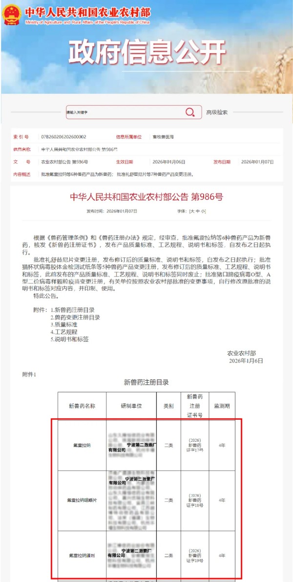 03 沃德宝(沃德宝(宁波)宠物生物科技有限公司))作为宁波第二激素厂有限公司旗下专注宠物健康的品牌,始终秉持“守护爱宠健康”的企业使命。 此次氟雷拉纳系列新兽药的获批,是沃德宝在宠物药品领域迈出的重要一步。 沃德宝将继续深耕宠物药品、保健品,通过持续的技术创新和产品研发,为中国宠物健康事业贡献更多力量。 04