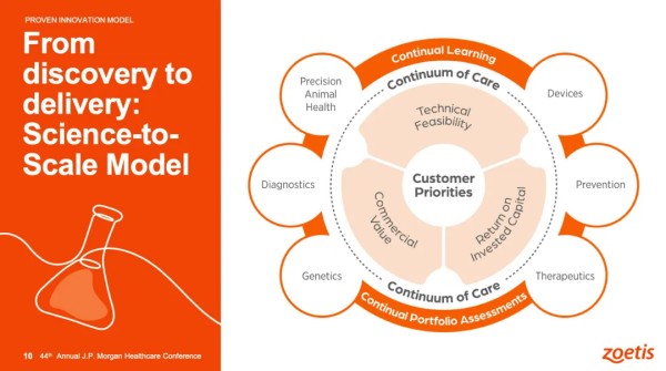 2026年1月12日至13日,旧金山第44届JPM医疗健康大会如期举行。在这场被视为全球医药行业“风向标”的年度盛会上,动物保健领域的两大巨头——Zoetis(硕腾)和Elanco(礼蓝)相继发布了各自的年度战略规划。会议披露的数据显示,全球动物保健市场规模预计将从2024年的420亿美元增长至2035年的900亿美元(区间预测),在这近乎翻倍的增长预期中,伴侣动物板块以其更高的增速和更广阔的创新空间,成为两家公司战略布局的核心。硕腾CEO Kristin Peck和CFO Wetteny Joseph在演讲中强调,公司将凭借“从科学到规模”的商业模式,通过持续的研发投入和全球化商业网络,巩固市场领先地位。而ElancoCEO Jeff Simmons则展示了公司从2022年负增长到2025年预期6-6.5%增长的转型轨迹,并将“Big 6”产品组合的成功商业化视为兑现承诺的关键。这场大会不仅是两家公司向投资者传递信心的舞台,更为全球兽医、宠物零售商、行业从业者提供了一个观察动保巨头如何在宠物医疗“黄金十年”中卡位的窗口。从驱虫药的正面交锋,到皮肤病赛道的差异化竞争,再到长效制剂、全渠道能力的战略押注,两家公司的战略选择正在重塑伴侣动物医疗的竞争格局。在两家公司的演讲中,对伴侣动物市场趋势的判断高度一致,这些共识构成了理解其产品策略和商业布局的基础。宠物主支付意愿的代际跃迁正在加速。硕腾在演讲中特别强调,年轻一代宠物主的消费行为与上一代存在显著差异,他们将宠物视为家庭成员,对宠物医疗的投入意愿更强。礼蓝的数据则进一步印证了这一趋势,深化的人宠情感纽带推动了宠物医疗的“人性化”进程。这种代际差异在产品接受度上表现得尤为明显——长效针剂、慢性病管理方案等过去被认为"过度医疗"的选择,如今正成为年轻宠物主的主动需求。决策权从兽医向宠物主转移的趋势不可逆转。处方药线上渠道的快速增长是这一趋势的直接证据。硕腾在演讲中披露,公司已建立起覆盖45个以上国家的商业网络,兽医诊所、零售渠道和电商平台构成了三维覆盖体系。礼蓝则更为直接地展示了其在这一转变中的成果——公司在OTC宠物健康零售市场排名第一。这种决策权转移对产品设计产生了深远影响,包装设计、用药便利性、适口性等过去不被重视的要素,如今成为产品差异化的关键。全渠道能力正在从“加分项”变为“准入门槛”。硕腾强调其全球规模和多渠道布局是“在客户需要的地方与他们会面”的能力体现。礼蓝的转型故事则从另一个角度印证了这一判断——公司在2019-2021年整合Bayer动保和Kindred的过程中,核心目标之一就是实现“全球规模、产品组合多样性、全渠道能力和生产效率”。行业共识正在形成:单一渠道依赖意味着市场份额的天花板。综合产品组合的战略价值被重新认识。企业客户,尤其是兽医诊所,希望通过“一站式采购”减少供应商数量、简化库存管理。硕腾在这方面具有明显优势,公司拥有300余条产品线,覆盖犬、猫、牛、猪、禽等8个物种。礼蓝的“Big 6”战略则是从另一个方向应对这一趋势——通过填补驱虫药、皮肤病等核心品类的空白,提升在关键客户群体中的产品组合完整度。美欧趋势的全球化扩散创造了新的增长空间。硕腾披露其国际业务占总收入的52%,礼蓝则以具体案例展示了这一趋势的商业价值——Zenrelia在巴西、加拿大、日本等市场实现了“通常需要3-4年才能达到的市场份额在1年内完成”。这些市场正在重复美国10年前的消费升级路径:宠物拥有量增加、人宠情感深化、医疗支出提升。硕腾在JPM大会上展示的数据证明了其市场领先者的地位。2024年公司实现营收92.56亿美元,自2013年IPO以来的年复合增长率达到8%,显著高于行业平均的5%。更值得关注的是公司的盈利能力——调整后EBITDA利润率连续多年维持在38%的水平,在2019-2024年间的平均投资资本回报率(ROIC)达到26-27%,远高于标普500医药板块的平均水平。这些财务数据背后,是硕腾在三大增长引擎上的持续投入和战略定力。驱虫药赛道的守成者姿态。硕腾将寄生虫防治视为公司最大的业务板块,并在演讲中详细阐述了市场演变趋势。全球犬猫驱虫药市场规模在2024年约为120-130亿美元,预计到2030年将增长至150-160亿美元。在这个稳定增长的市场中,一个重要的结构性变化正在发生:三联复方产品(同时覆盖心丝虫、跳蚤、蜱虫)的市场份额正在快速提升,预计将从2024年的22亿美元增长至2030年的65-75亿美元,年复合增长率达到15%。Simparica Trio是硕腾在这一赛道的核心产品。虽然公司未披露具体的市场份额数据,但强调了该产品的“先发优势”——在成犬和幼犬市场均处于领先地位,宠物主满意度超过85%。产品的临床优势体现在多个维度:覆盖多种绦虫、杀蜱速度较竞品快2倍、从第一个月开始即提供心丝虫保护,以及良好的适口性。面对礼蓝Credelio Quattro的强势进攻,硕腾的应对策略体现在两个层面。一是继续强化品牌信任和临床数据积累,通过持续的真实世界研究(RWE)和兽医培训巩固专业认可度。二是在产品管线中布局下一代创新,包括更长效的剂型选择和新的给药方式。皮肤病赛道的双产品保险策略。美国犬类皮肤病市场在2024年的规模约为18亿美元,预计到2030年将增长至25-30亿美元,年复合增长率为7-8%。硕腾在这一市场拥有两款重磅产品:Apoquel和Cytopoint,两者的组合策略体现了