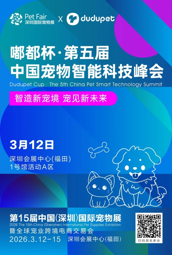 2026年3月12日,由深宠展主办,嘟都冠名赞助的嘟都杯·第五届中国宠物智能科技峰会,将在深圳会展中心(福田)1号馆活动A区举办。本次峰会汇聚宠物智能科技领域的顶尖思考者和实践者,直面宠物用品“智能功能遍地开花”时代的新挑战,深度探讨在功能同质化、价格内卷与跨境红海等多重变量下,如何通过宠物智能生态整合资源、重塑价值,塑造长期竞争优势?