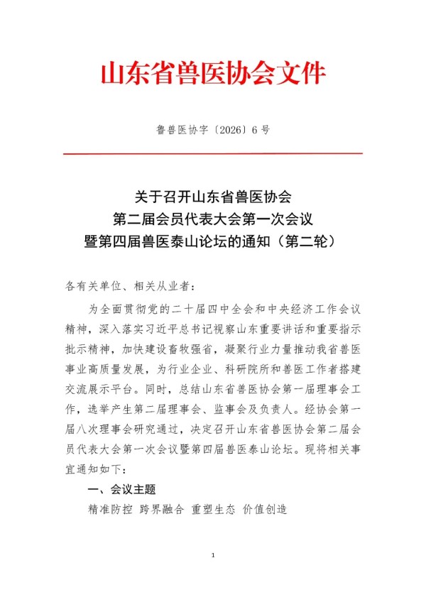 关于召开山东省兽医协会第二届会员代表大会第一次会议暨第四届兽医泰山论坛的通知(第二轮)