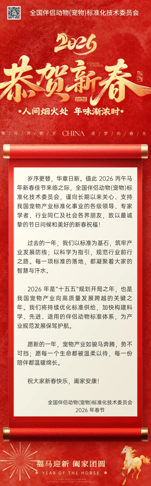 策马奔腾启新程 | 全国伴侣动物(宠物)标准化技术委员会恭祝行业同仁新春大吉!