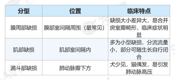 ① 小型缺损(直径<2mm):分流量小,心肺负荷无显著增加,多数犬猫终身无临床症状,仅在体检时听诊发现杂音。