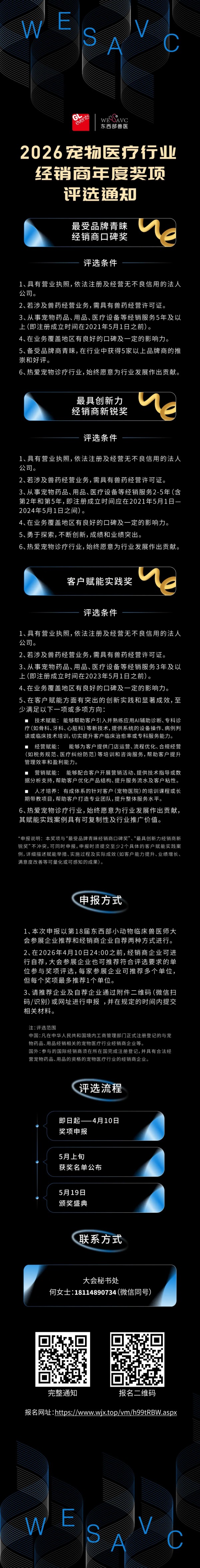 2026宠物医疗行业经销商年度奖项评选正式启动,寻找行业标杆!