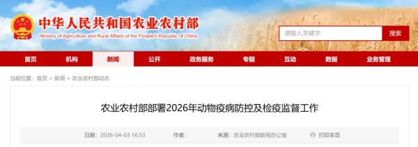 4月1日,农业农村部召开2026年动物疫病防控及检疫监督工作会议,深入分析当前形势,全面部署年度重点工作。农业农村部党组成员、副部长张治礼出席会议并讲话。