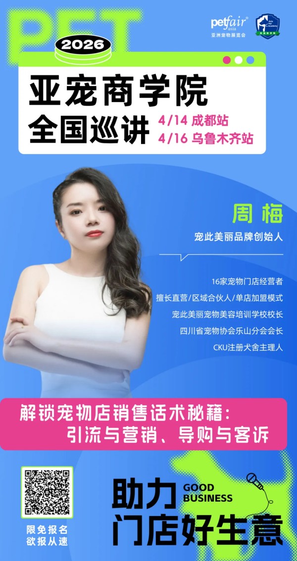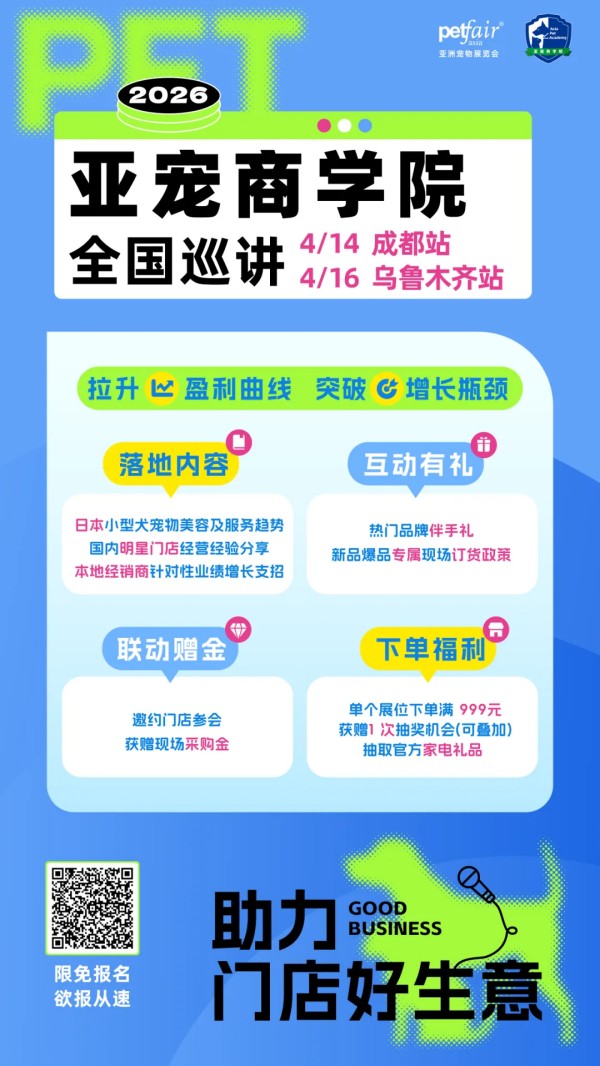 当前宠物线下竞争激烈、流量紧张,门店亟需优质选品与经营提质,品牌亦需精准对接线下渠道实现产品落地——亚宠商学院始终坚守赋能行业、助力门店成长的初心,2026亚宠商学院全国10站联动,特别邀请国际讲师打造国际+本土双讲师赋能模式,带来趋势前沿的专业经营干货,切实帮助门店突破增长瓶颈、提升盈利水平。也为品牌搭建精准渠道对接平台、提供10城线下曝光机会,助力拓宽市场版图。
