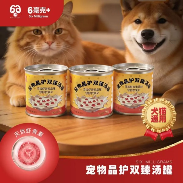 虾青素晶球锁鲜抗氧化+高肉乳基营养+肠道免疫双呵护+天然草本清热配方,打造一款全阶段猫犬通用的高机能汤罐,补水、营养、抗老一步到位。