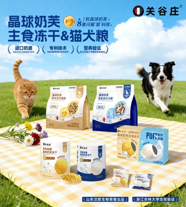 关谷庄“晶球奶芙”系列定位于 “主粮+功能营养一体化”解决方案,旨在以“高肉主粮+功能冻干”双核体系,解决营养协同与吸收效率的关键痛点。