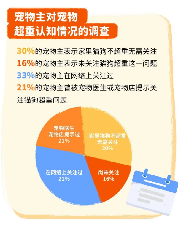 在美国,宠物肥胖预防协会2022年的调查指出,约59%的狗和61%的猫被评定为超重或肥胖,其中近三分之一的超重宠物的主人误判其体重状况正常,这无疑增加了宠物罹患相关疾病的风险。