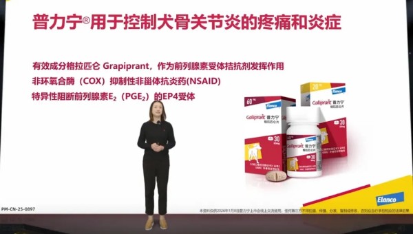 2026年1月8日,礼蓝动保在上海举办的云端盛会 —— 普力宁®上市会暨《犬骨关节炎诊断分期与治疗专家共识》(以下简称 “专家共识”)发布会圆满落幕。本次会议汇聚小动物诊疗行业众多专家和院长,聚焦犬骨关节炎诊疗现状与挑战,并见证了普力宁®在中国正式上市与《犬骨关节炎诊断分期与治疗专家共识》的发布。此次盛会标志着通过专家共识促进规范化诊疗,引领行业在犬骨关节炎领域迈向新阶段;同时,普力宁®的上市也为临床治疗提供了全新的选择。 聚力同行,擘画犬骨关节炎诊疗新局 会议伊始,中国兽医协会常务副秘书长刘秀丽、中国兽医协会兽医骨科(小动物)专科委员会主任委员潘庆山与礼蓝动保大中华区总经理陆智斌先后致辞,祝贺专家共识发布和普力宁®在华上市。 随着行业对犬骨关节炎的关注提升,建立统一规范的诊疗理念,已成为推动行业进步的重要课题。今年,多位专家起草的《犬骨关节炎诊断分期与治疗专家共识》正式落地,为临床诊疗提供明确参考,也标志着犬骨关节炎慢性疼痛规范管理迈出关键一步。刘秀丽副秘书长指出,宠物诊疗正向专科化、标准化迈进,本次中国兽医协会联合礼蓝与行业专家推动共识落地,将有助于完善国内犬骨关节炎诊疗和健康管理体系,指导临床提升诊疗效果和动物福利水平。同时,潘庆山主任委员强调,专家共识结合礼蓝推出的利物浦犬骨关节炎问卷(Liverpool Osteoarthritis in Dogs,LOAD)与犬骨关节炎分期工具(Canine OsteoArthritis Staging Tool,COAST),为临床带来了清晰的诊断分期标准和可直接落地的管理方案,让患犬可以获得更及时、更精准的治疗。礼蓝动保大中华区总经理陆智斌表示,礼蓝深耕宠物健康业务,持续推出重磅新品,同时赋能客户开展专科项目,助力合作医院提升综合服务水平。普力宁®进入中国市场,不仅是新产品上市,更是理念、工具与管理体系多维协同完善的重要起点。 新品解析,普力宁®犬骨关节炎治疗新选择 礼蓝宠物健康事业部产品部门负责人应悦佳,深度介绍了新品普力宁®(Galliprant®,格拉匹仑片) 的相关信息。普力宁®的主要成分是格拉匹仑,是一种非环氧合酶(COX)抑制性非甾体类抗炎药(NSAID),是前列腺素E2(PGE2)EP4受体拮抗剂。EP4受体是负责调节PGE2引发炎症及疼痛的关键受体,是引起伤害感受的主要介质。格拉匹仑通过与PGE2的EP4受体结合,从而达到抗炎和镇痛的效果1。国外真实证据展示其良好的疗效与安全性,自2016年Galliprant®在境外上市以来,10年累计惠及了全球千万只患犬2。普力宁®在中国上市,是犬骨关节炎长期管理迈出的关键一步。 共识解读与医院发展,犬骨关节诊疗提速 宠爱国际创始人李雪总,带来了骨关节炎x宠主需求:医院持续发展新驱力分享,指出宠物老龄化促使骨关节炎等慢性病高发,医院需提升专科综合服务能力满足宠物和宠主不断提升的需求。她以宠爱国际与礼蓝动保在2025年7月共创的口腔预防医学项目为例,强调礼蓝动保从产品技术、管理培训、诊室丰容等多维度赋能协作,该项目取得了显著的阶段性成果,口腔手术病例数提升70%,口腔科室总营收提升90%。 接下来, 中国农业大学动物医院手术中心主任石磊,带来犬骨关节炎专家共识介绍和诊疗经验分享,指出共识为临床兽医提供统一、可操作的循证诊疗框架,旨在实现犬骨关节炎早期筛查、精准诊断、分期治疗及终身管理,全面提升患犬生活质量与动物福利。诊断以COAST为准则,遵循 “先分级、后分期”。治疗上确立 “分期施治、多模式管理”原则。COAST将犬骨关节炎划分为5个连续且明确的临床阶段,覆盖从风险期到终末期的全疾病谱。早期筛查治疗有效减轻症状,助力患犬维持日常活动。 随后,礼蓝合作伙伴上海领华宠医院长王威分享了两例骨关节炎临床案例,深入展示早期诊断骨关节炎疼痛、老年犬关节疼痛长期管理等常见临床场景的治疗心得,强调了正确诊疗的重要性。在分享的最后,王院长表示,骨关节炎治疗的意义不止于控制疾病,更在于提升动物福利、改善宠主生活,为患犬和宠主争取到更多充满活力的陪伴时光! 线上嘉宾共同见证普力宁®在中国正式上市与《犬骨关节炎诊断分期与治疗专家共识》发布。共识促进规范化诊疗,引领行业在犬骨关节炎领域进阶。普力宁®上市,带来治疗新选择! 礼蓝宠物健康:用专业和服务,共筑未来新篇 最后,礼蓝宠物健康事业部市场与技术总监张璇通过国内外诊疗数据对比,指出国内犬骨关节炎领域的巨大机会。中国犬疼痛市场份额不到全球的0.5%;市场体量小,但增速快,犬骨关节炎是其中的增长引擎。 礼蓝作为全球犬猫骨关节炎领域的重要参与者,持续投资于前沿研究与先进工具,同时结合兽医和宠主教育,为犬猫实现最佳护理提供支持。 礼蓝也将秉持初心,不断推动犬骨关节诊疗发展。一方面,礼蓝动保以 “专业引领” 为核心,联合协会、专家,助力行业迈向 “专业化、规范化、标准化”的新阶段 。另一方面,通过骨关节炎项目,配套诊疗方案、管理工具、落地培训等的 “犬骨关节炎一体化解决方案”,帮医院把 “精准治疗” 落地。同时,联动宠主教育,以社媒活动、义诊等形式连接宠主与医院需求,引导宠主认知疾病,助力医院长期价值的沉淀。 未来,礼蓝动保与普力宁®将携手宠医,让更多的狗狗活力回归,尽情撒野!期待与行业同仁共同推动犬骨关节炎规范化